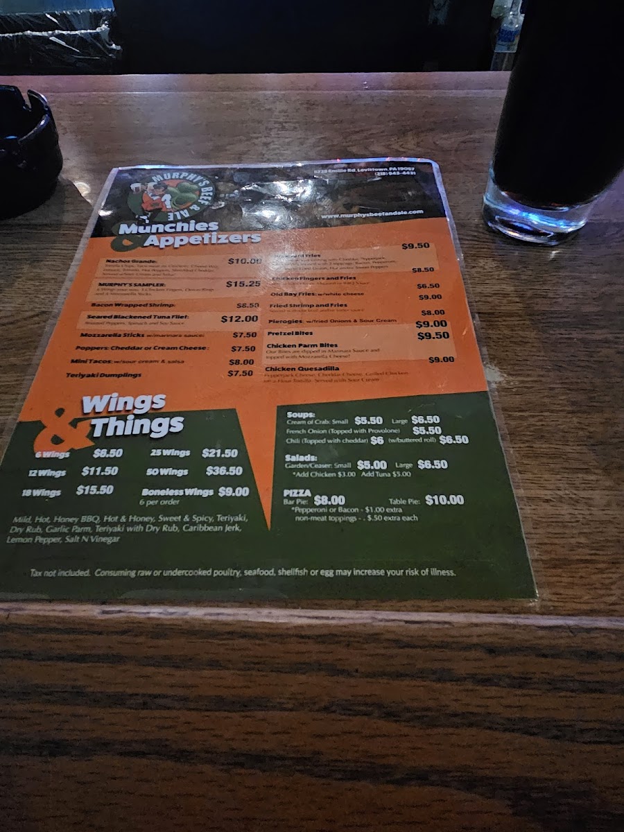 Murphy's Beef & Ale Menu